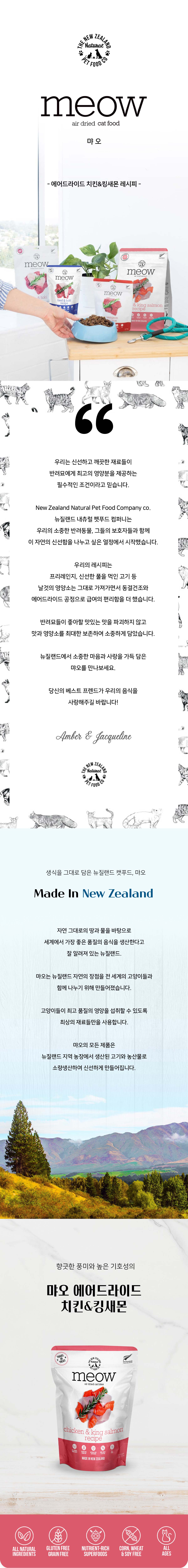먀오 닭고기&왕연어 에어드라이드 전연령 고양이 사료 100g (유통기한 26.04.16)