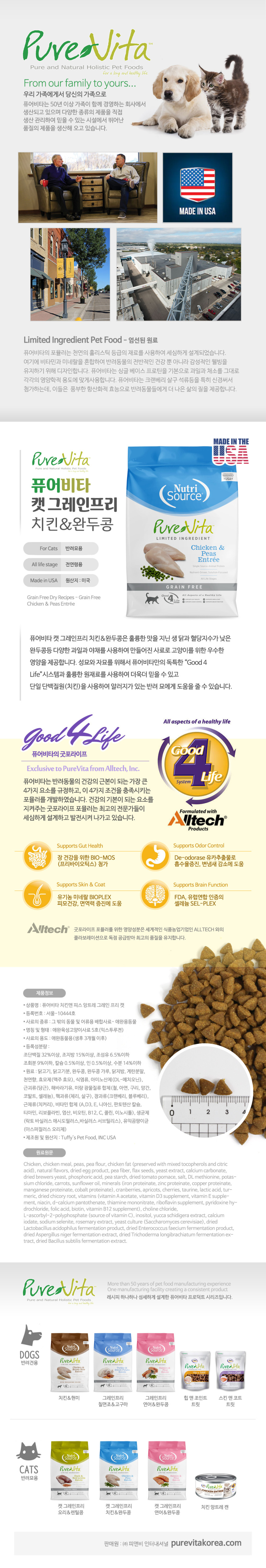 퓨어비타 캣 그레인프리 치킨 & 완두콩 5.44kg