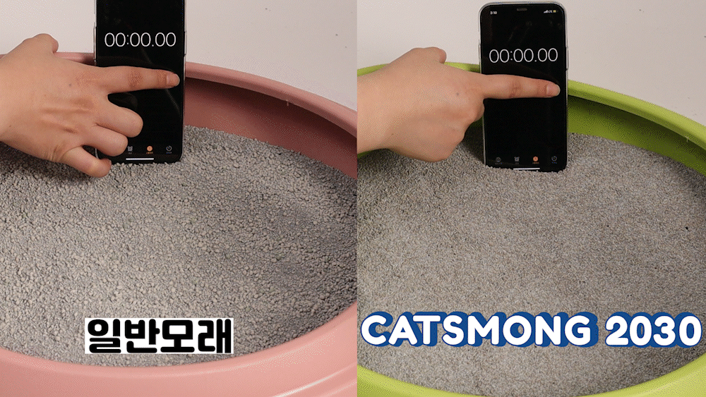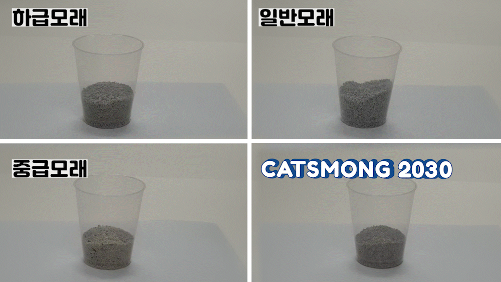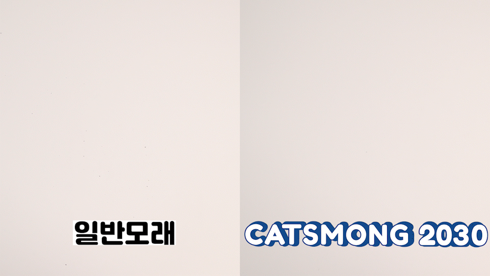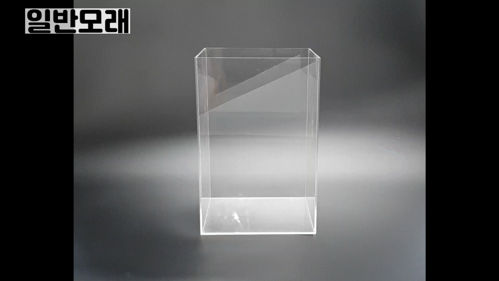 아래쪽 모래는 그대로 형태 유지, 모래 소모량과 경제성 육안 확인 가능!!